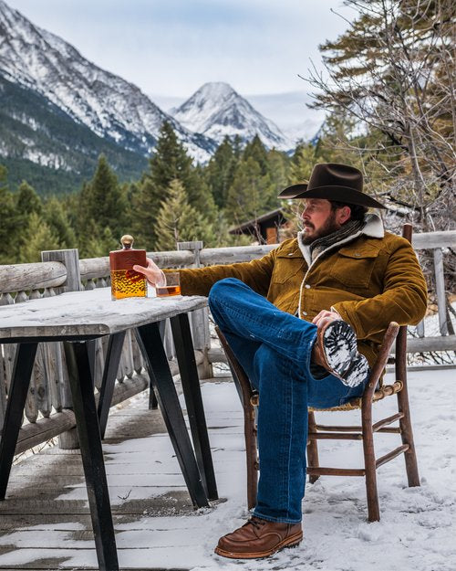 Named for one of the oldest cattle ranches and longest-running guest ranches in Montana, Lazy K Bar straight bourbon whiskey celebrates the heritage and strength of the pioneers that built big sky country. Distilled from a mashbill of 74% corn, 18% rye, and 8% malted barley, our 8-year-old Kentucky straight bourbon is meticulously crafted for a smooth, bold taste at 92 proof. A blend of 8, 9, and 10 year old straight Bourbon aged in #4 “alligator char” barrels. Each bottle is individually branded with the Lazy K Bar iron and wrapped in real leather that is cut and applied by hand.